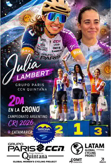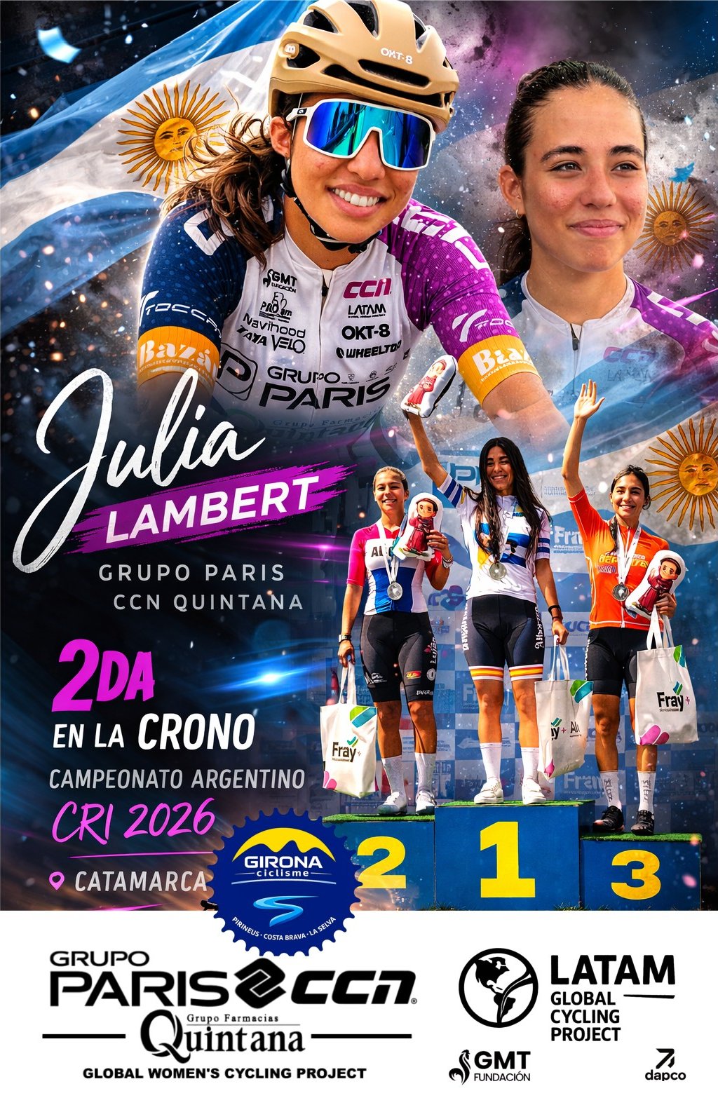 La ciclista Julia Lambert, integrante del equipo Grupo Paris CCN Quintana, consiguió una destacada segunda posición en la prueba de Contrarreloj Individual JUNIOR (CRI) del Campeonato Argentino 2026, disputado en Catamarca.
